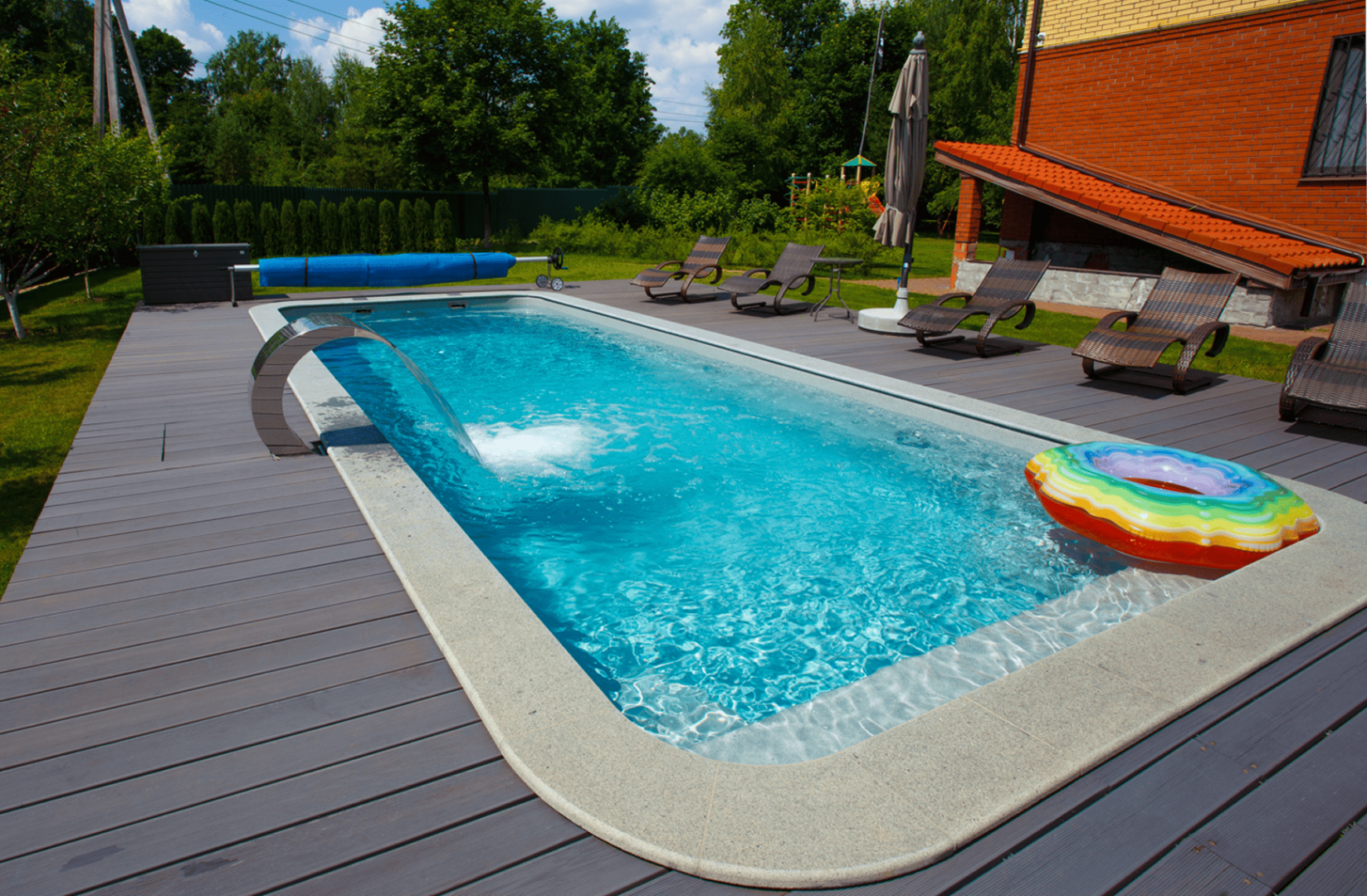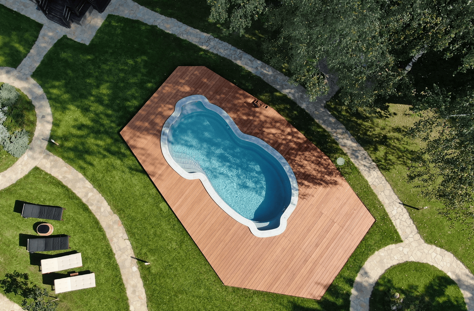 При создании покрытия «Хуко», дизайнеры FRANMER вдохновились цветом воды в тенистых лесных озерах. Глубокое сочетание сине-зеленого, с мягкими переливами голубого передает таинственную атмосферу лесных озер. Бассейн с покрытием «Хуко» настроит на спокойный отдых.